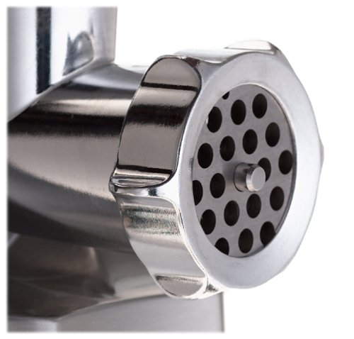 And unlike the K'Aid food grinder which is all-plastic, the body of the Waring Pro is all-metal. The tray, hopper, and worm are all die-cast metal, while the unit's body is a shiny stainless steel. Only the pusher and sausage stuffer attachment are plastic.